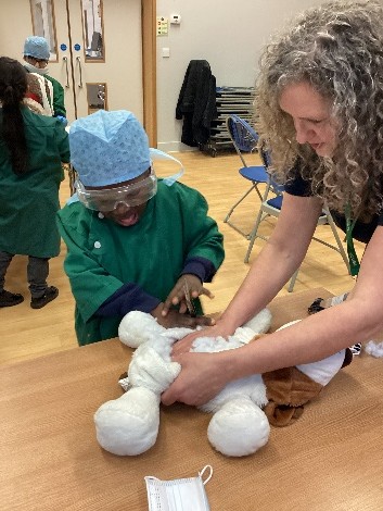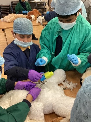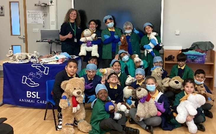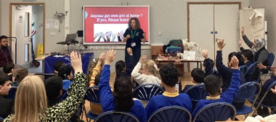 Julie Beckett, a Deaf Veterinary Nurse visited our school. Pupils from Swain House and Hanson School also joined us for her presentation. Julie shared her experiences of life and work as a veterinary nurse, explaining how she cares for animals and supports vets in their daily practice. She also set up hands‑on activities designed especially for deaf children, giving them the chance to role‑play as vet nurses. Pupils practiced looking after animals, carrying out mock operations, and even learnt how to use bandages and give injections.