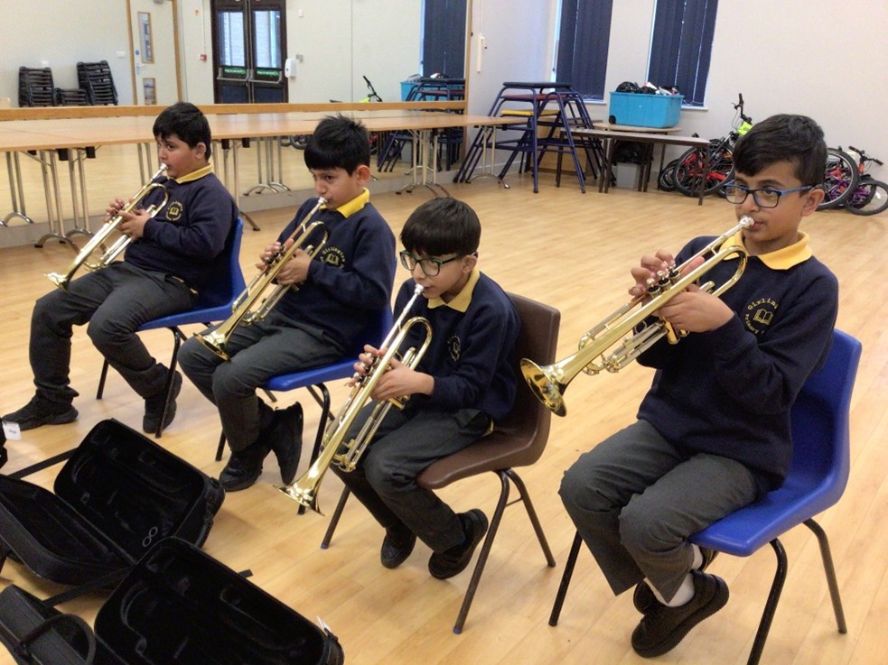As part of ‘Music and the Deaf’ provision in Bradford, our pupils benefit from weekly music sessions where they are learning to play a variety of brass instruments. A qualified music teacher, Mr Fields, visits every week to teach the lessons. These are accessed by all of our deaf pupils, even the most profoundly deaf, because of the low, loud sounds which the instruments make and also because of the vibrations which accompany the sound. Pupils are making excellent progress and thoroughly enjoy the sessions.